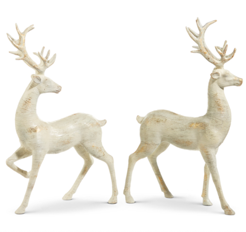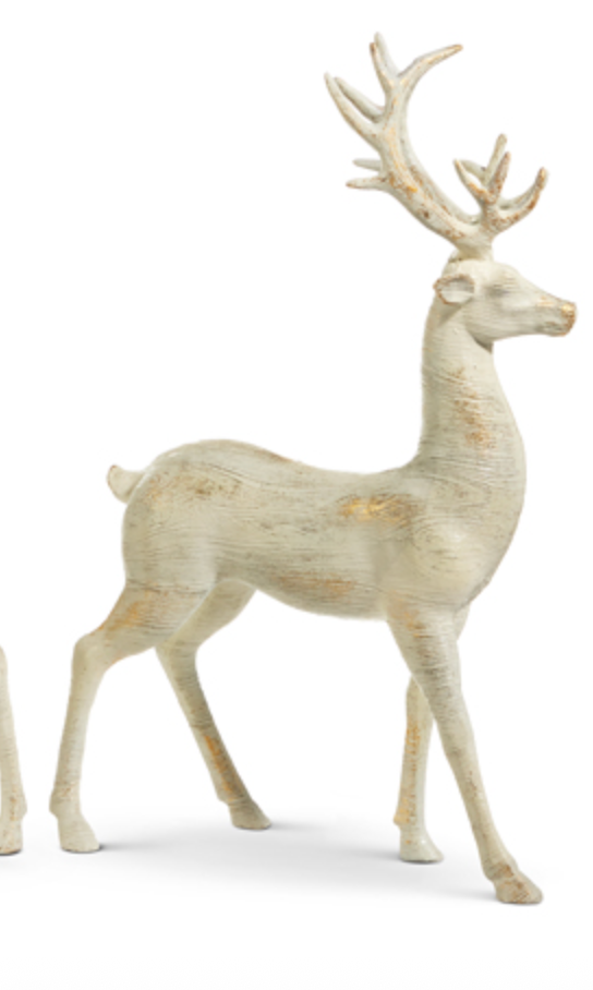 Bring holiday magic home with this charming white deer adorned with shimmering gold accents. Available in two playful stances, these festive decorations add a touch of sparkle and whimsy to your Christmas display. Perfect for creating a cozy, joyful atmosphere that captures the spirit of the season.