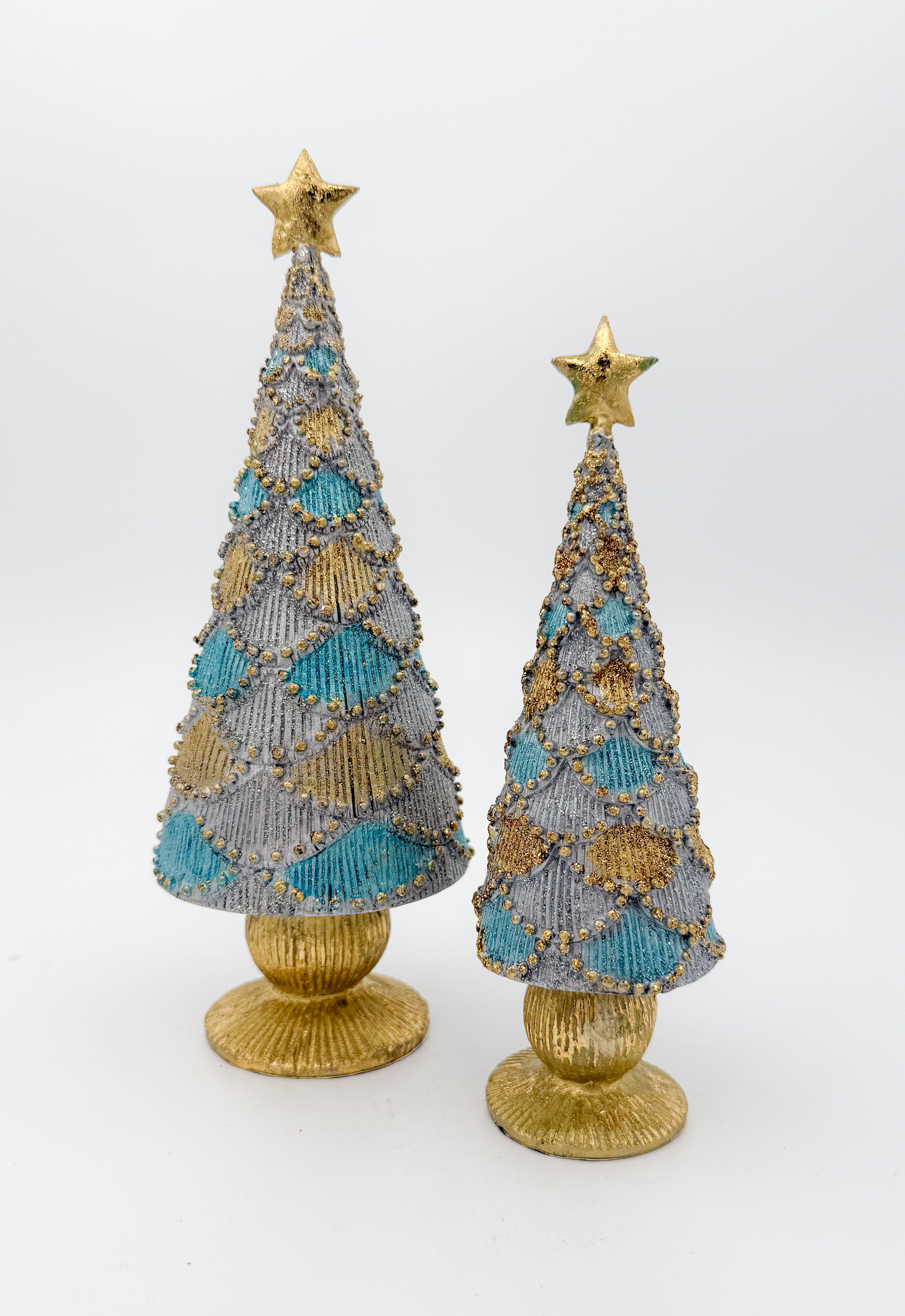 Add a touch of festive whimsy with this Eliptikal Cone Tree featuring a shimmering silver star. Hand-painted in playful blue and green patterns, this collectible resin Christmas tree brings charm and color to your holiday décor. Perfect for gatherings or as a cheerful accent on your mantel, it’s a delightful piece that captures the joyful spirit of the season.