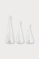 Add a sparkle to your holiday decor with these Clear Glass LED Christmas Trees filled with shimmering silver beads. Available in three festive sizes, they bring a magical glow to any room. Perfect for creating a cozy, twinkling centerpiece—just add batteries and watch the holiday cheer light up your space!