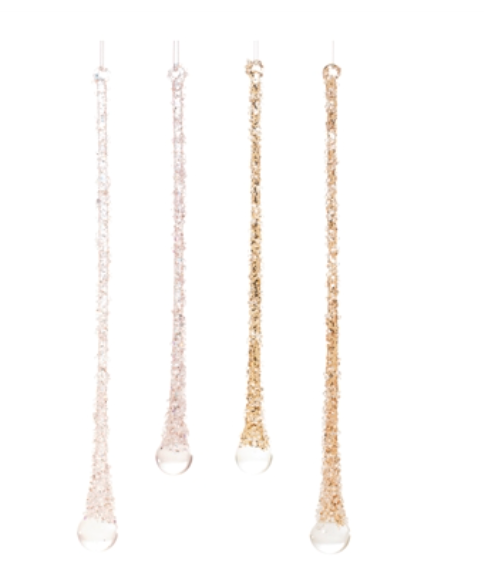 Add sparkle to your holiday décor with the Glitter Drop Ornament! Featuring a shimmering glitter top and a glossy glass ball at the bottom, this festive ornament shines in both white and silver. Available in two sizes, it's perfect for creating a playful and dazzling look on any tree or wreath. Let your celebrations sparkle brighter this season!