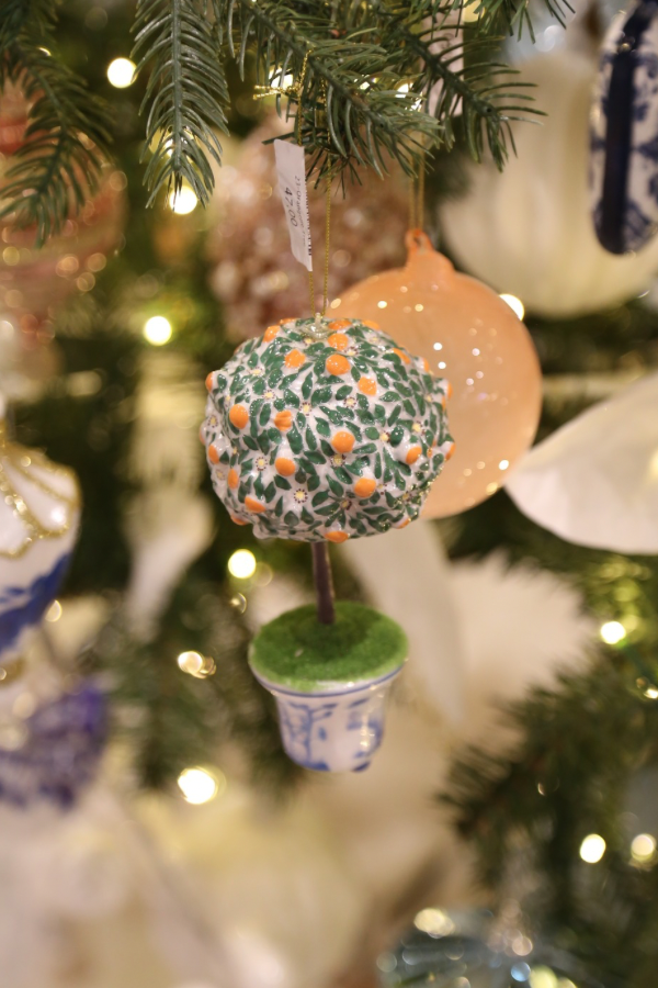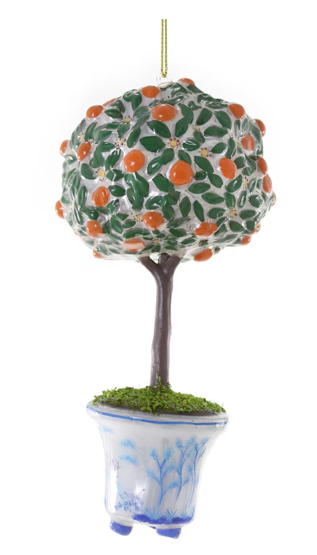 Add a pop of color (and fruit) to your decor with our Orangerie Tree. This quirky glass tree ornament features an orange tree in a playful blue container, perfect for adding a touch of whimsy to any space. No watering required!