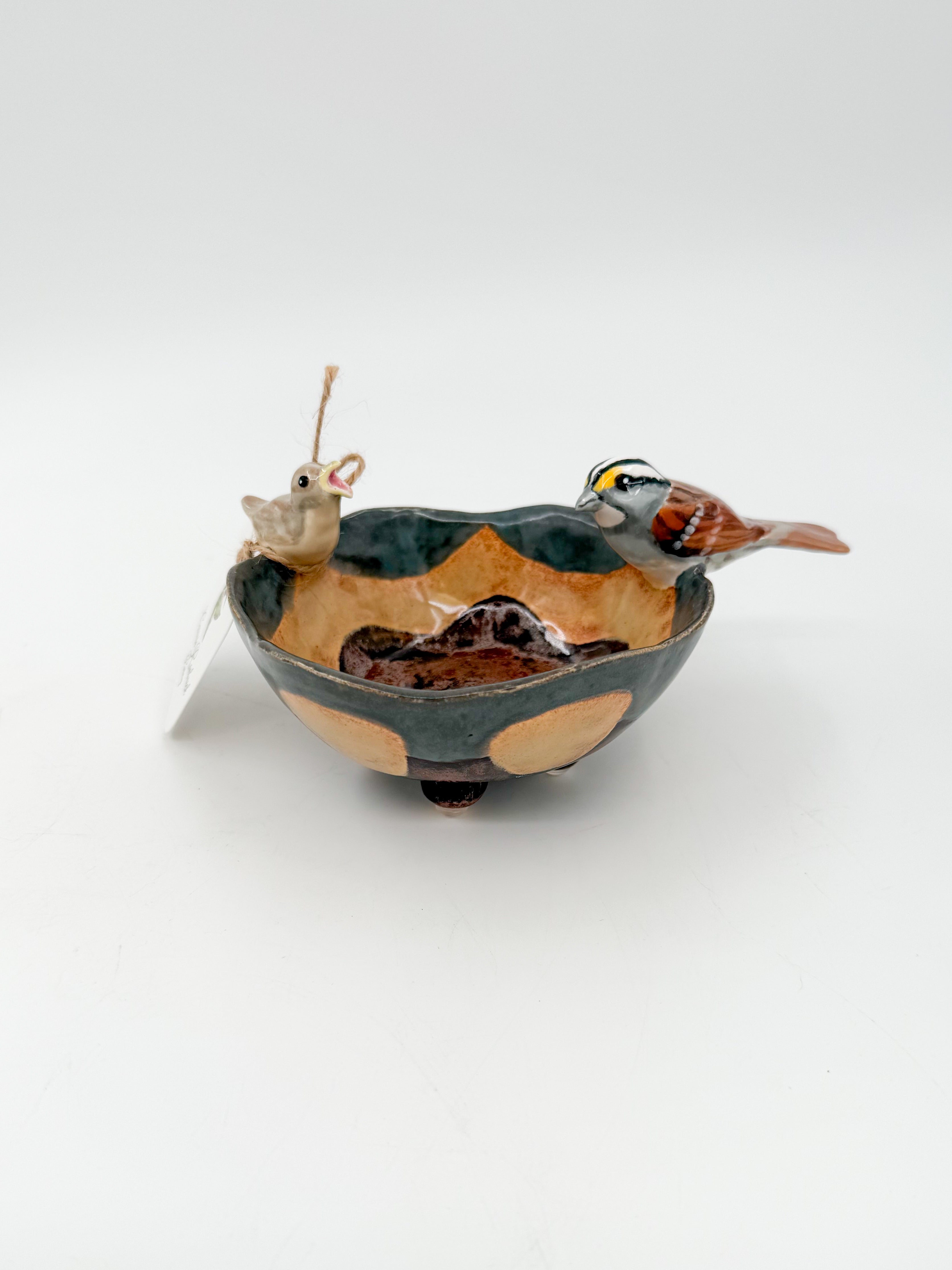 Each piece in the Small Birds of Mississippi collection is expertly handcrafted by Carrie Roebuck in Mississippi without the use of a pottery wheel. These unique ceramics feature detailed depictions of local Mississippi birds, combining regional wildlife inspiration with skilled craftsmanship. Every item is a custom, one-of-a-kind work, making this collection a distinctive and authentic addition for collectors and enthusiasts of fine ceramic art.