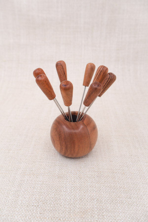 Introducing Woody Cheesesticks - the perfect way to serve cheese at your next party! These convenient wooden handle skewers and holder make it easy to create a beautiful and delicious cheese platter. Impress your guests with this stylish and practical serving solution.