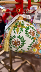 Elevate your decor with the Bumble Ball Ornament, featuring a delicate blown glass design lined in sterling silver. Adorned with an intricate bee and wreath pattern, this ornament brings timeless elegance and refined craftsmanship to any setting. Its subtle shine and detailed artistry make it a distinguished accent for your home or seasonal display.