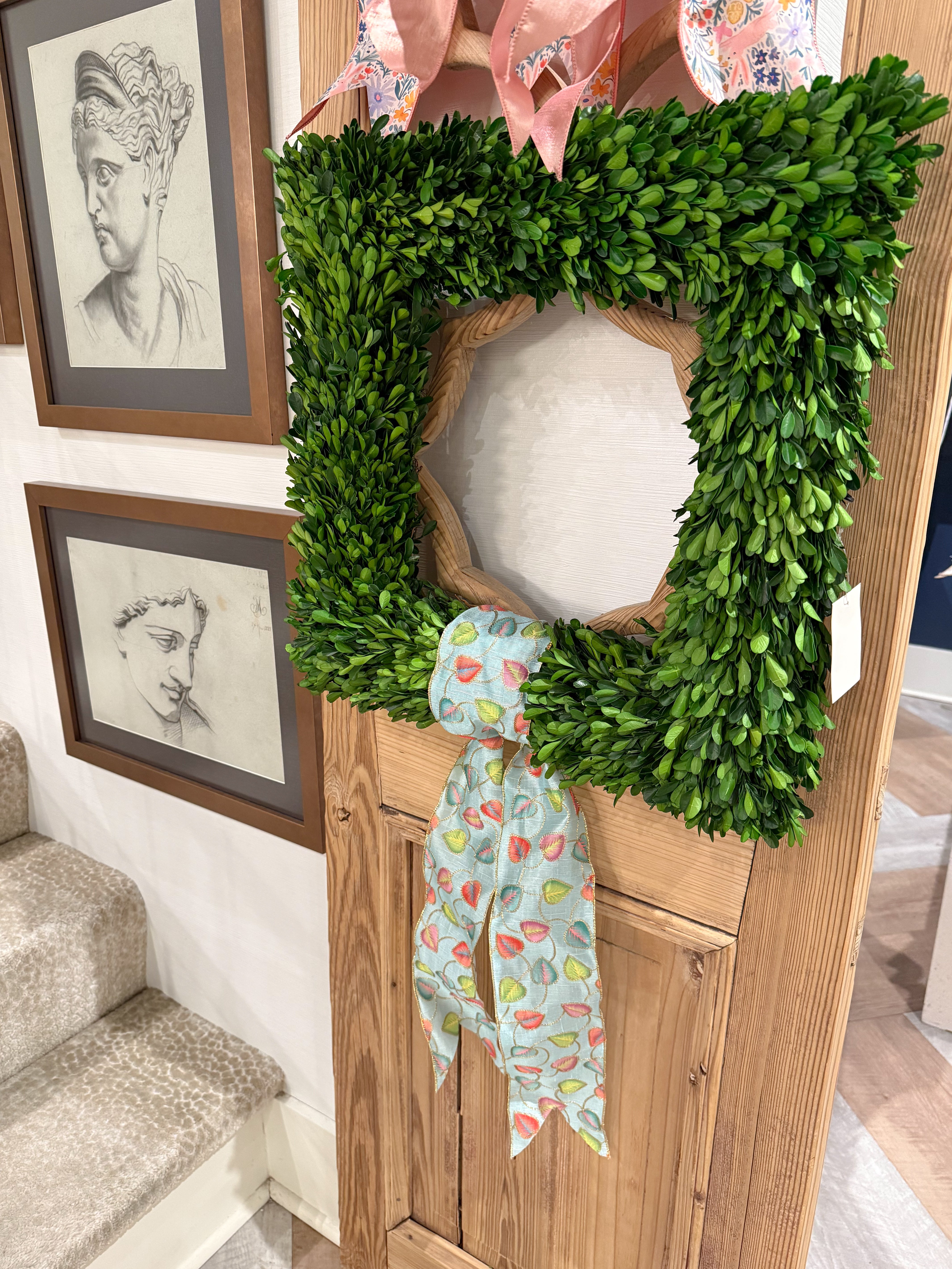 This timeless preserved boxwood wreath is perfect for adding a touch of elegance to your space. The square shape and twig vine base make it versatile for all seasons. Decorate with bows, ribbons, or monograms to personalize and elevate your space. Crafted with thick, lush boxwood leaves for a luxurious touch.