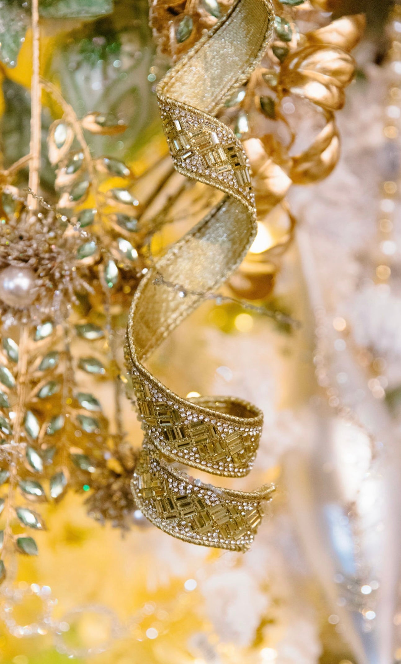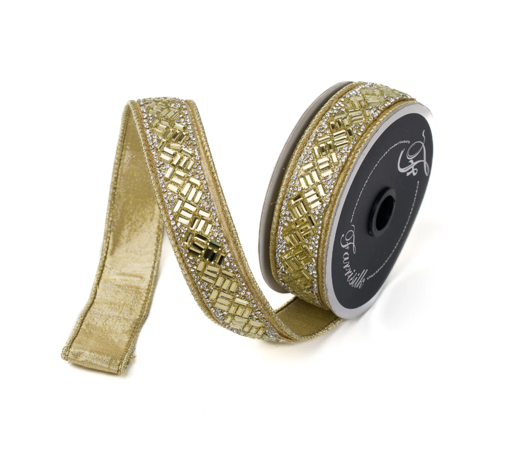 Add a sparkling touch to your crafts with the Jubilee Jewel Ribbon. This 1-inch wired ribbon features a rich gold background adorned with vibrant gold sequin rhinestones, perfect for creating festive bows, decorating gifts, or jazzing up any project with a playful pop of color and shine. Its wired edges make shaping easy and keep your designs looking fabulous.
