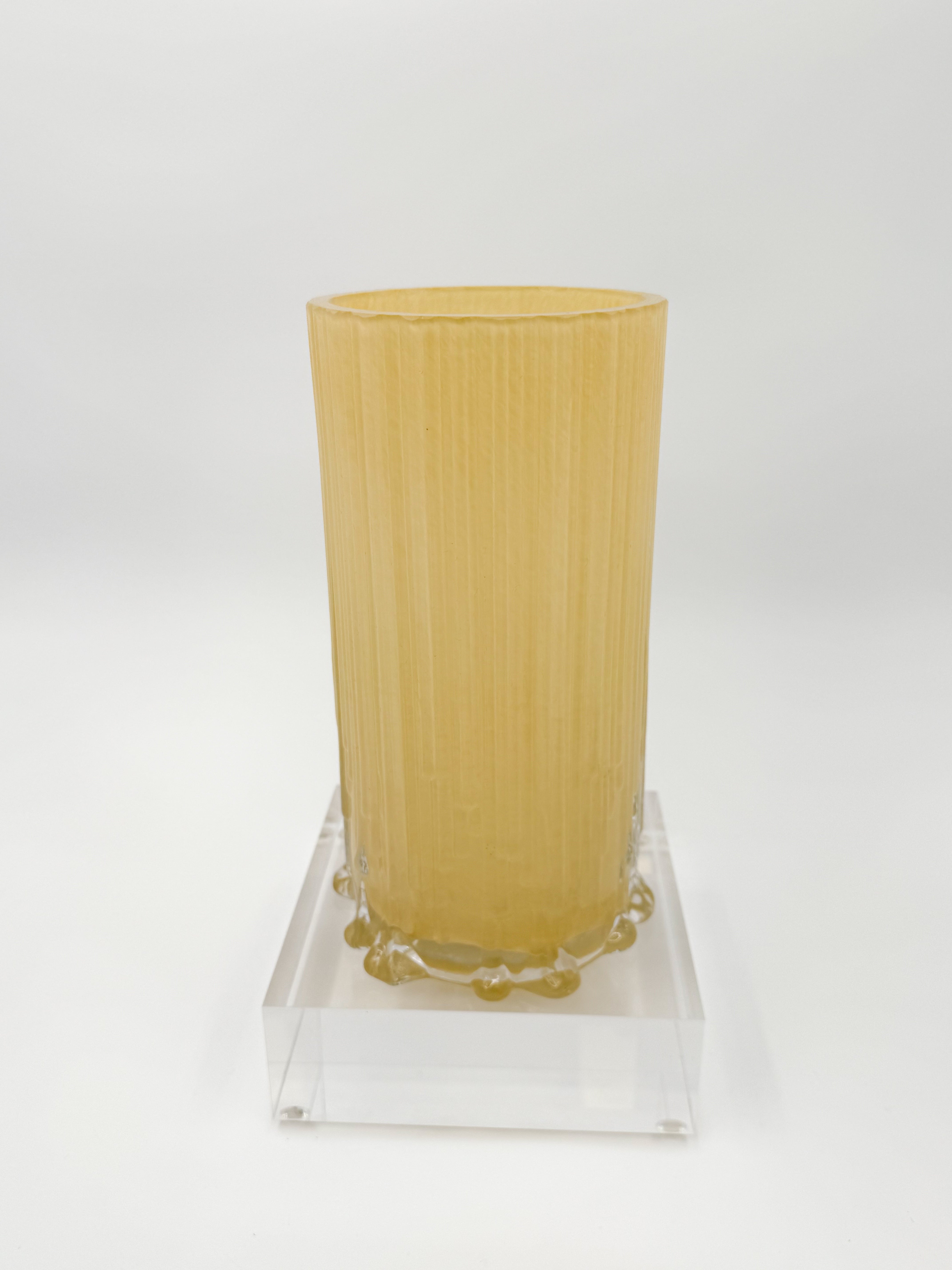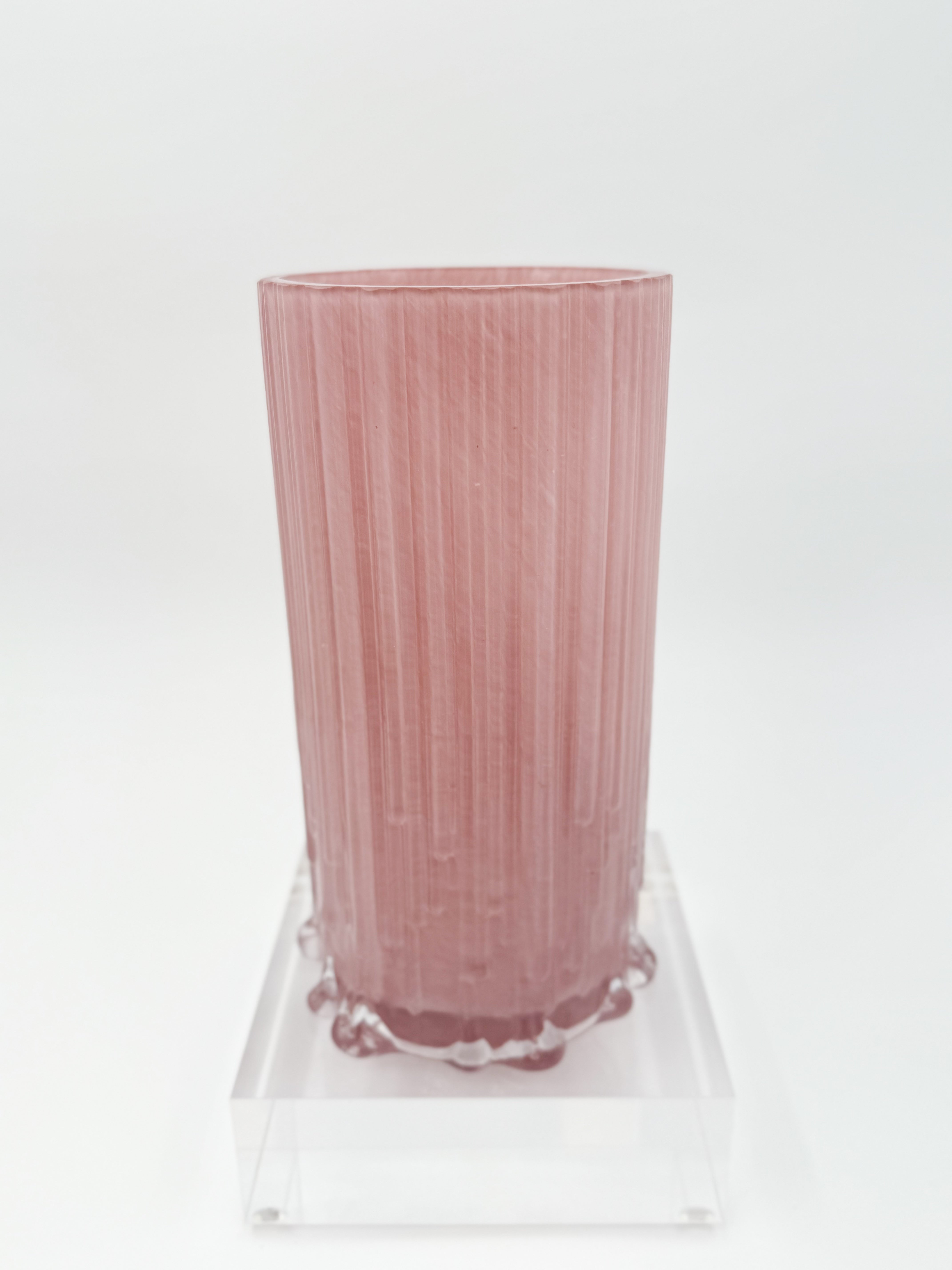 Introducing our Pastel Glass Vase, a ribbed beauty in soft hues. Perfect for showcasing a bouquet or as a standalone piece of art. Brighten up any room with this playful, delicate vase. (Roses not included)