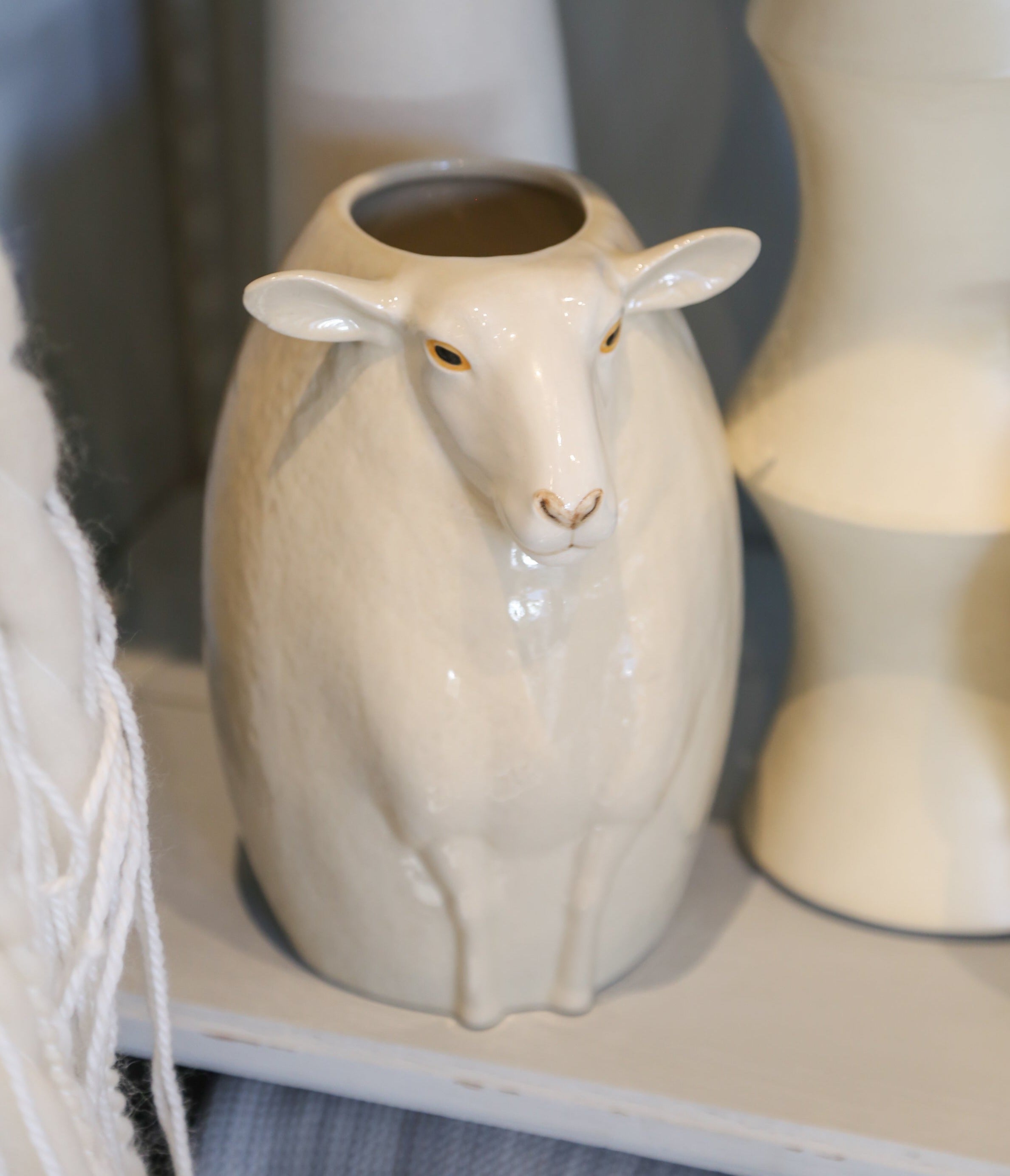 Add a touch of whimsy to your home with this ceramic Suffok Sheep Vase, hand-painted for a unique touch. Perfect for holding flowers or just as a quirky decor piece. Don't be sheepish, get yours today!