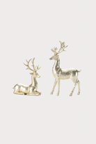 Add a touch of festive sparkle with these charming gold reindeer, available in two sizes. Choose between a playful standing pose or a cozy laying position to perfectly match your holiday décor. These glittering figures bring warmth and whimsy to any space, making your celebrations shine even brighter.