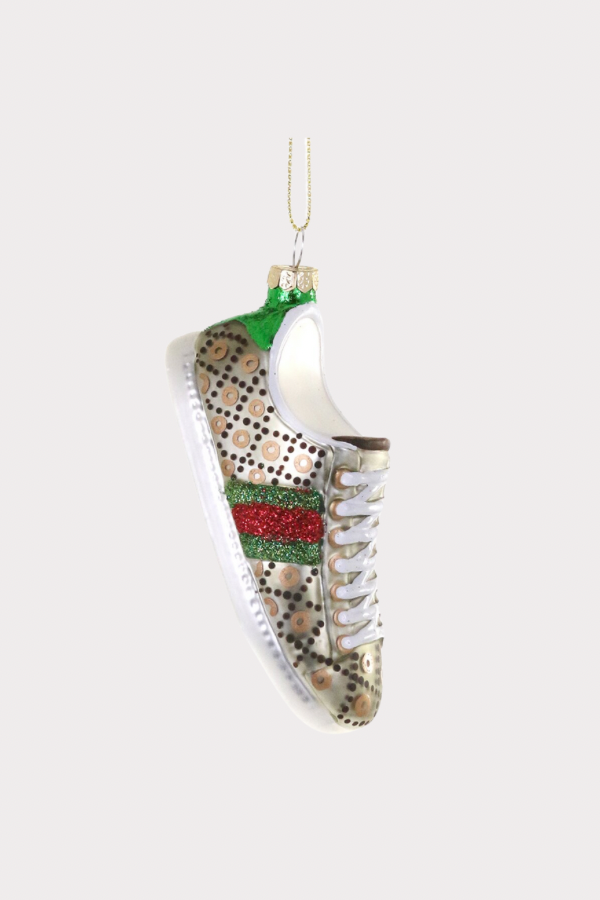 Step up your holiday décor game with the Luxe Sneaker Ornament, a playful nod to high-fashion kicks. This stylish mini sneaker ornament adds a fun, trendy vibe to your tree or shelf, perfect for sneakerheads and fashion lovers alike who want to celebrate the season with a touch of luxe flair.