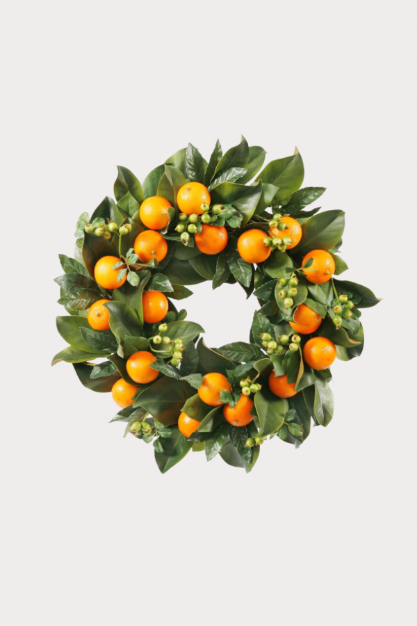This vibrant green wreath is adorned with faux oranges, adding a touch of natural elegance to any space. Made to last, this citrus orange wreath is a beautiful addition to your home decor.