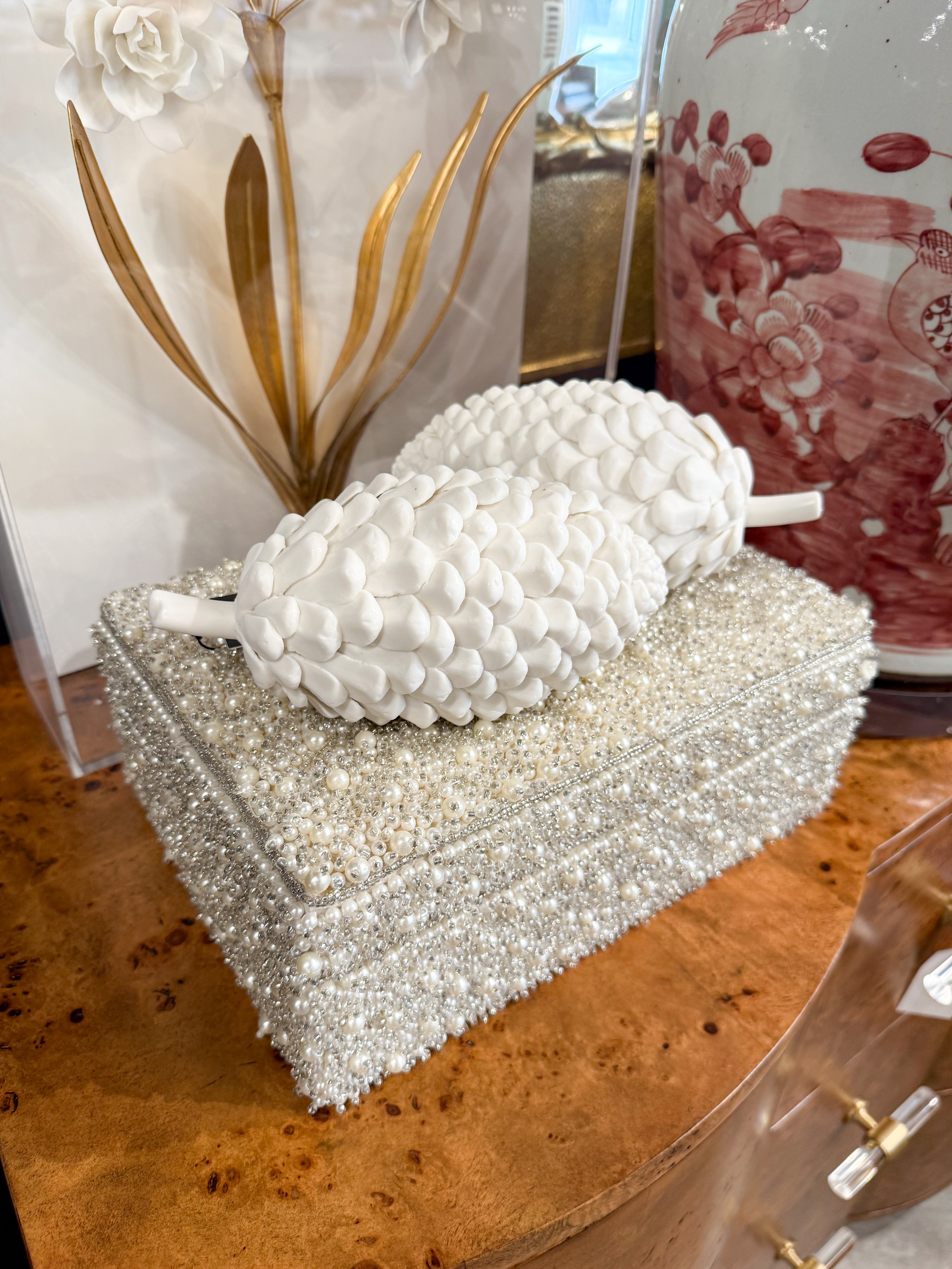 Bring a touch of woodland whimsy into your home with the Large Laying Pinecone from the Pine Cone Collection by Villa & House. Crafted in matte glazed porcelain, its detailed scales and crisp Blanc de Chine finish celebrate nature’s geometry with a playful twist. Perfect solo or paired, this charming accent adds rustic charm and serene vibes to any space.