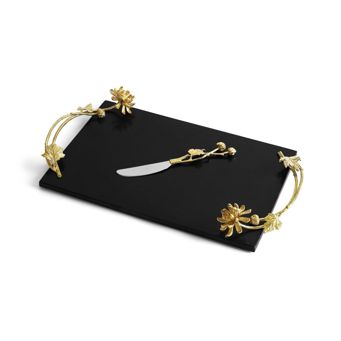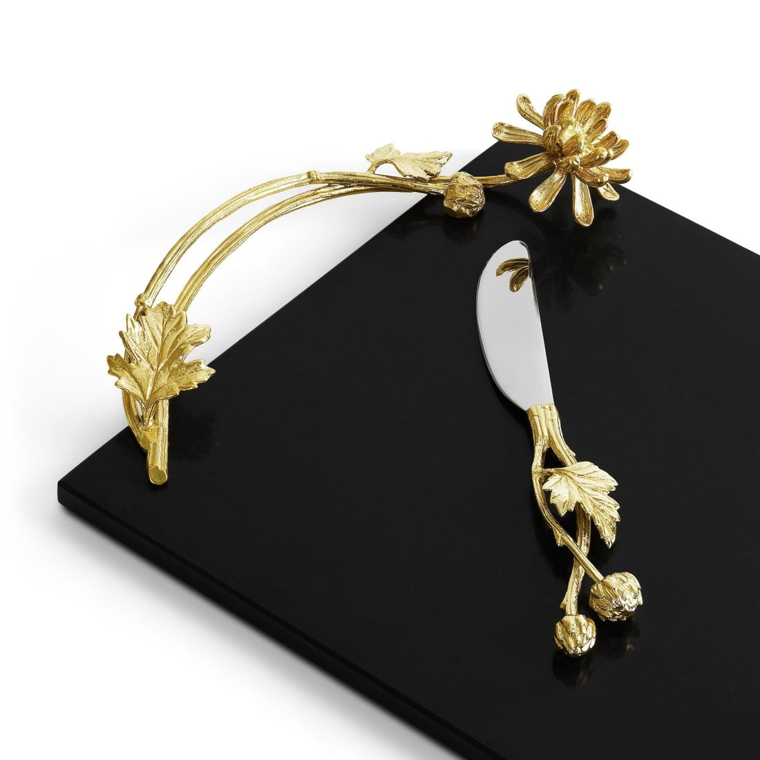 The Dahlia Collection by Michael Aram captures a sense of romance, intricacy, and opulence. In the Victorian era, Dahlias were given as a symbol of love and devotion. In certain pieces, Michael has chosen to contrast the radiant golden blooms against black granite and enameled stainless steel, evoking a mysterious sensuality. When found in nature, the petals’ perfect symmetry and spiraling pattern embody the Golden Ratio.