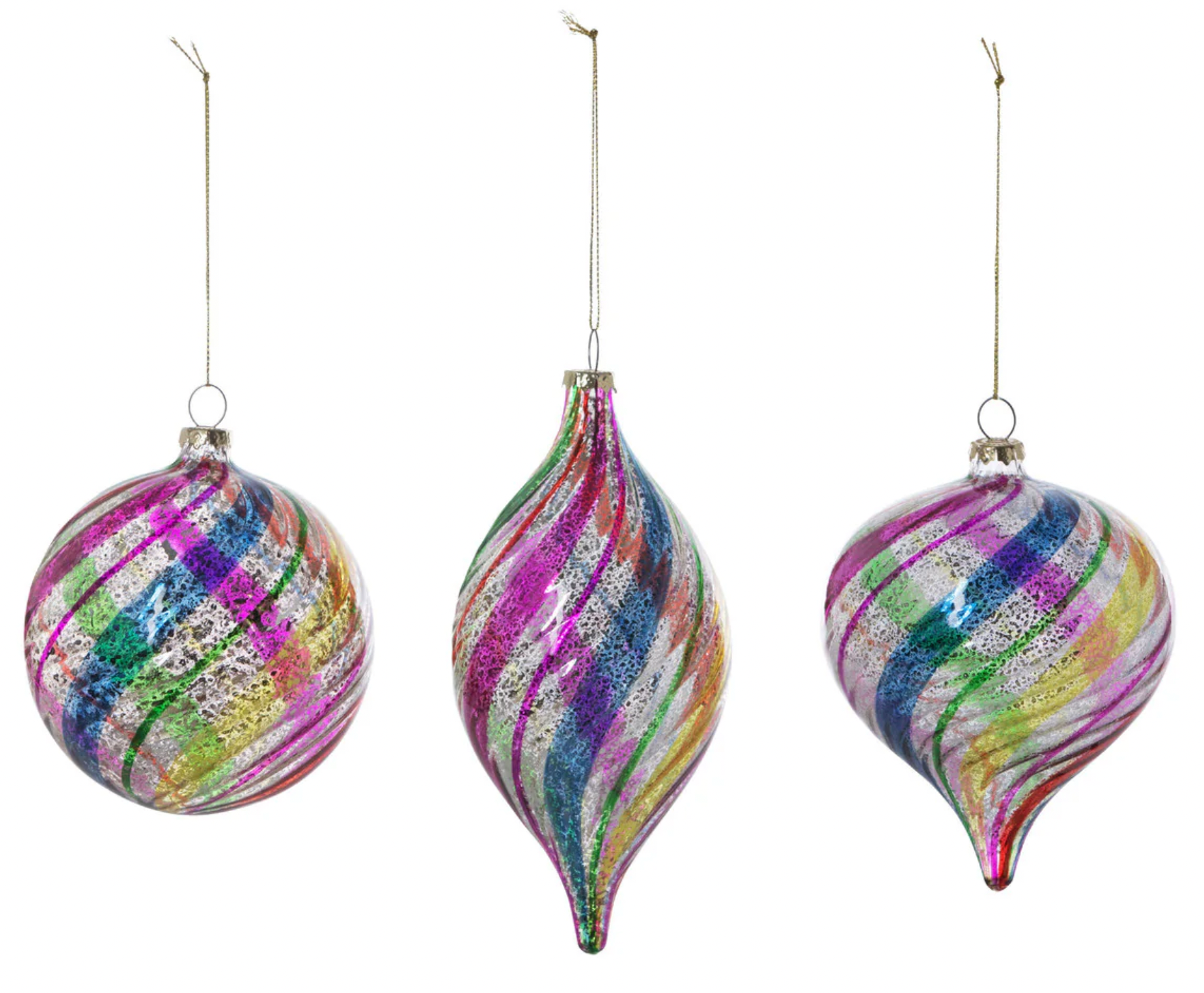 Elevate your holiday decor with the Swirl Stripe Vintage Glass Ornament. Its timeless swirled stripes capture classic charm with a sophisticated touch, adding elegance to any tree or display. Crafted from delicate glass, this ornament reflects light beautifully, creating a warm, nostalgic ambiance for your festive celebrations.