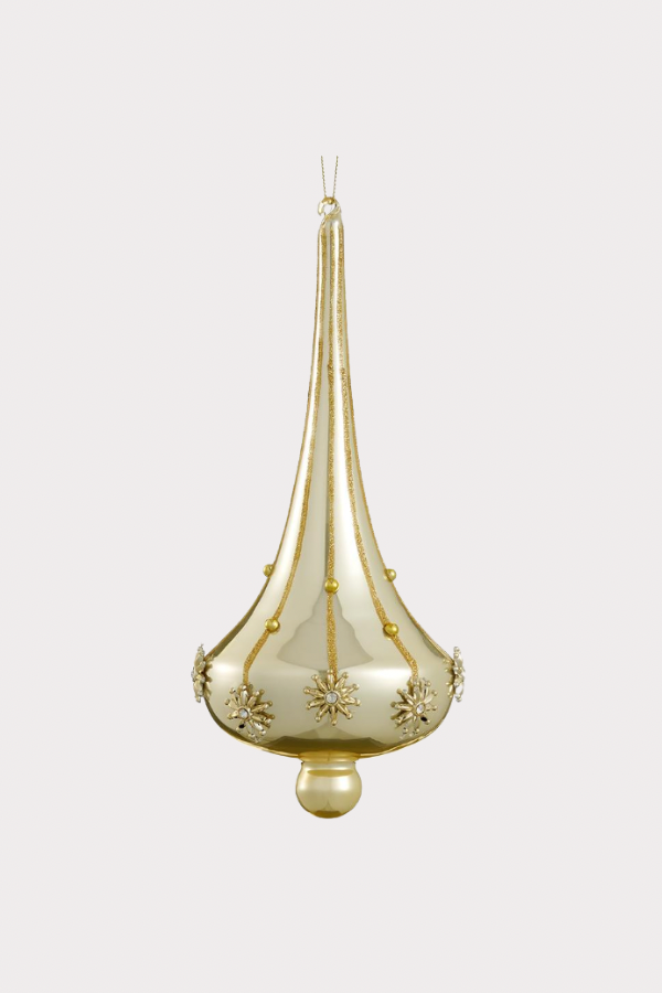 This 10" Gold Diamond Teardrop Ornament features a sophisticated diamond shape enhanced with glitter accents, adding a refined sparkle to your holiday décor. Its elegant gold finish and teardrop silhouette make it a standout piece for any Christmas tree or festive display, combining classic style with a touch of modern shimmer.