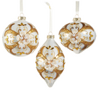 Add a touch of charm to your holiday décor with this 5.5" Floral Embellished Ornament. Available in three delightful shapes, each white and gold ornament features a beautiful flower at its center, bringing a fresh, playful vibe to your tree. Perfect for mixing and matching, these ornaments brighten any space with their elegant yet fun design.