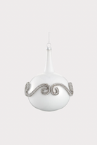 Add a touch of sparkle to your holiday decor with this 6" Diamond Trim Glass Drop Ornament in shimmering Silver Pearl. Its elegant shape and glistening finish catch the light beautifully, making your tree twinkle with festive charm. Perfect for adding a playful yet sophisticated shine to your seasonal celebrations.
