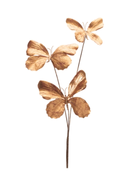 Add a whimsical touch to your holiday decorations with this Butterfly Pick featuring three delicate butterflies. Available in shimmering blue or elegant gold, each pick is perfect for adding a festive flutter to wreaths, garlands, or floral arrangements. Measuring 27", it brings a playful sparkle that brightens your Christmas décor with nature-inspired charm.