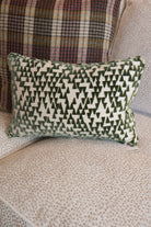 The Jackie Pillow brings refined comfort to your space with its custom-crafted design. This petite lumbar pillow features an elegant green geometric pattern, thoughtfully created to complement modern and transitional interiors. Perfect for adding subtle support and visual interest to sofas, chairs, or beds, it combines artisanal quality with understated sophistication.