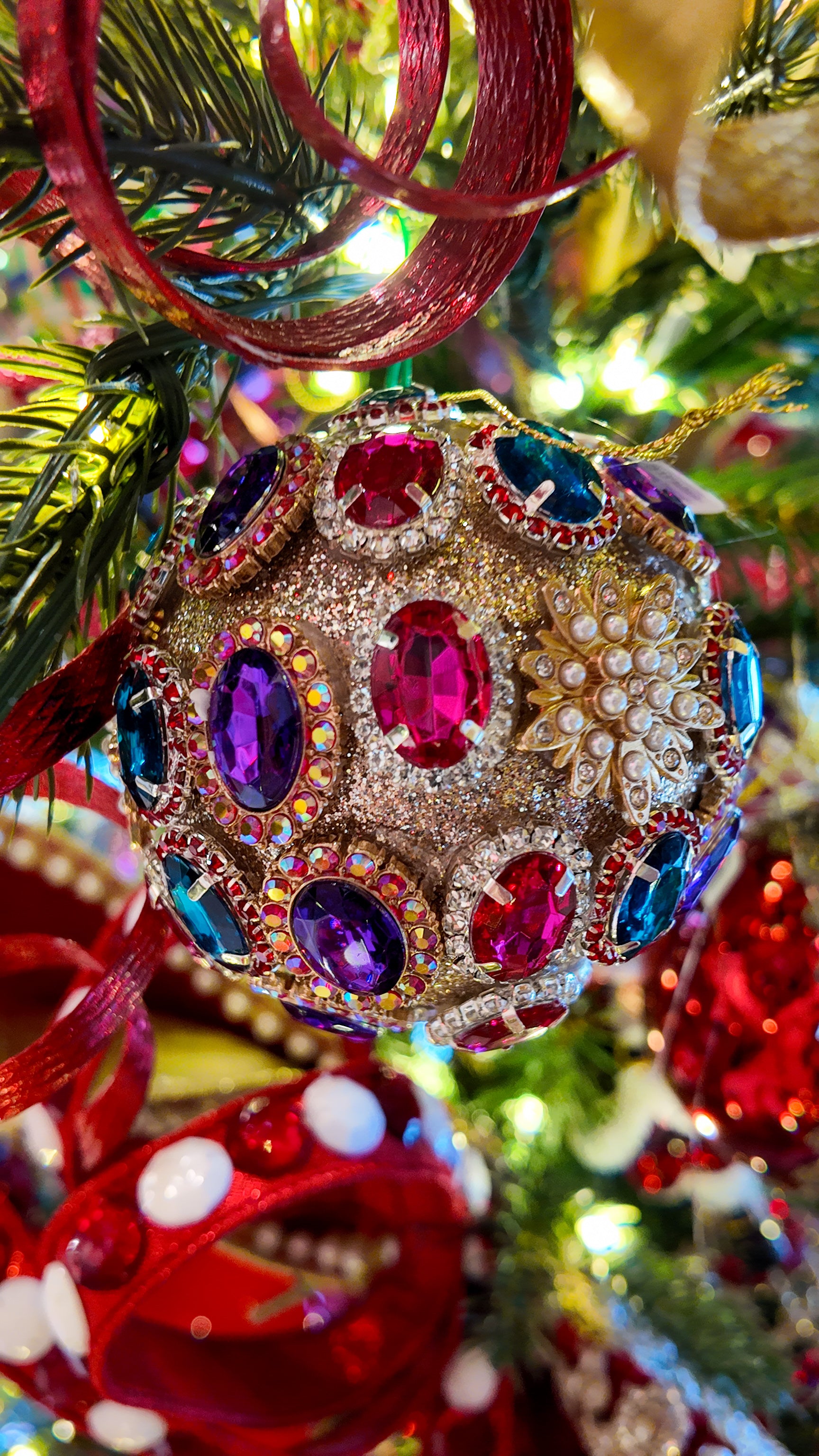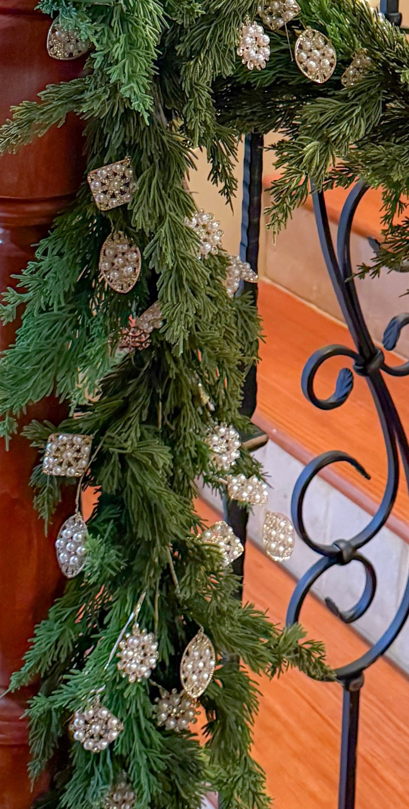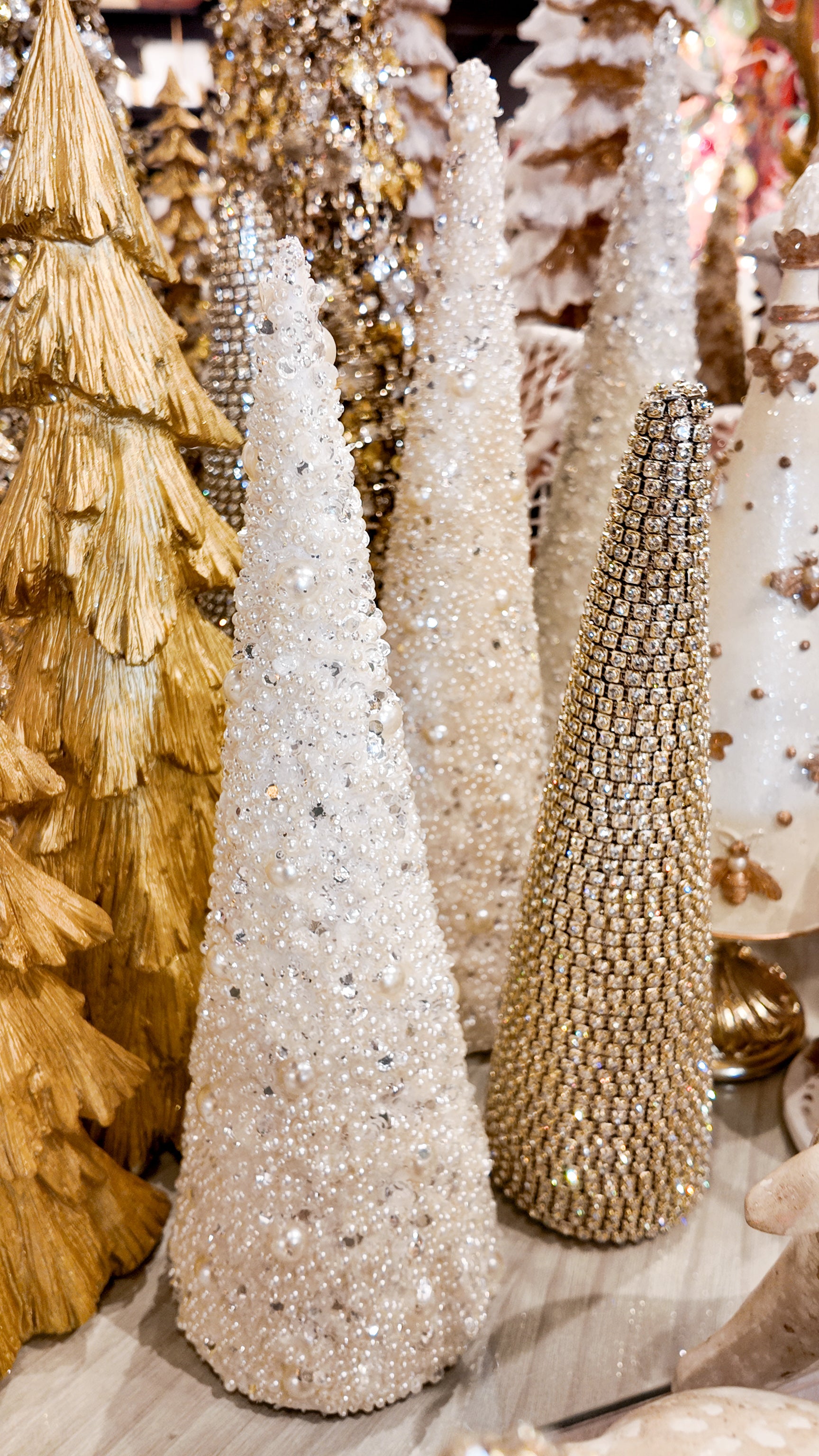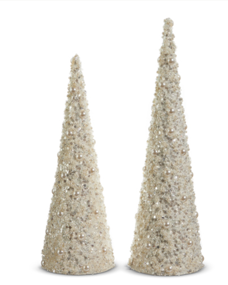25-16" Clear Pearl and Gold Beaded Drop Ornament