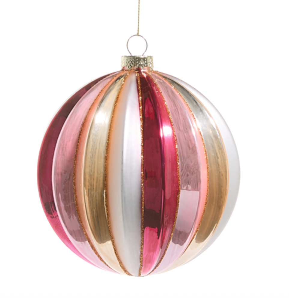 25-5" Shades Of Pink Ribbed Ball Ornament
