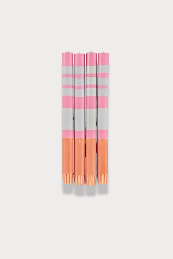 Striped Dinner Candle O/W/N 4pk