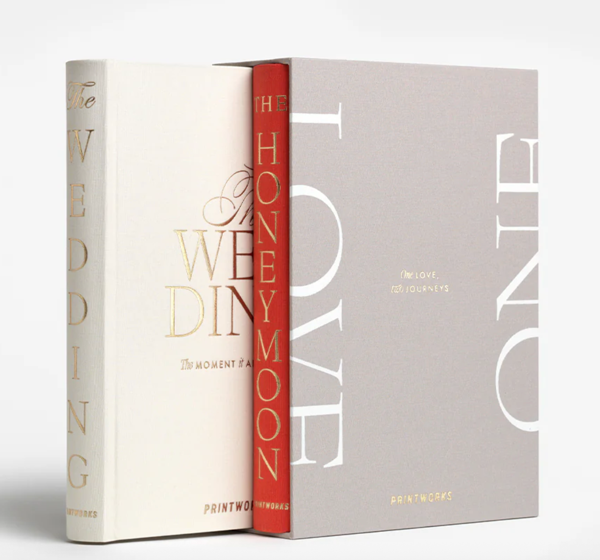 Preserve your wedding day and honeymoon memories in one elegant set. This collection includes two beautifully crafted photo books—one capturing your ceremony and celebration, the other showcasing your honeymoon adventures. Each 18x26.5 cm book contains 40 pages of high-quality white photo paper (80 pages double-sided), designed to fit perfectly on your bookshelf. Easily attach your photos with included stickers or corners, or print directly through us for a seamless experience. A timeless way to cherish your most special moments together.