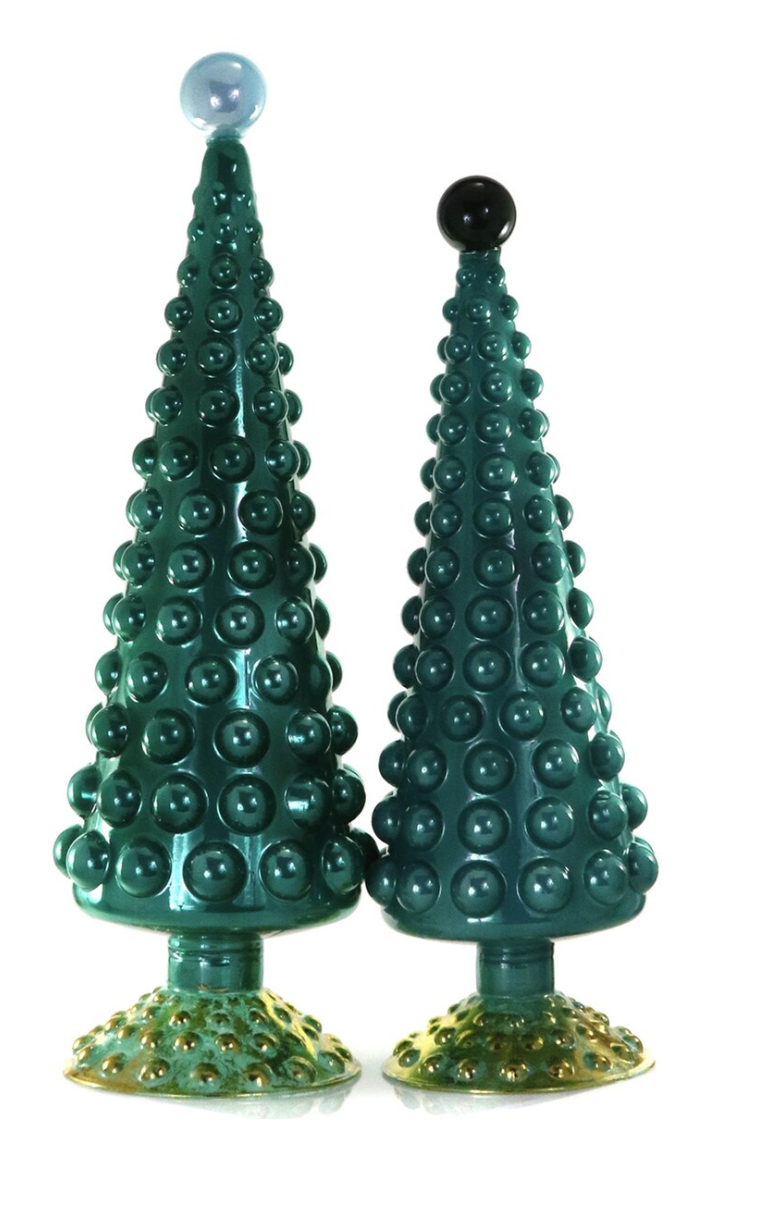 Add a splash of whimsy to your collection with the Cody Foster Hobnail Tree. Crafted from glass with charming hobnail texture, these delightful trees come in multiple vibrant colors and three sizes, perfect for mixing and matching. Whether displayed solo or as a set, they bring playful sparkle and festive cheer to any space. Collect them all and watch your holiday décor grow!