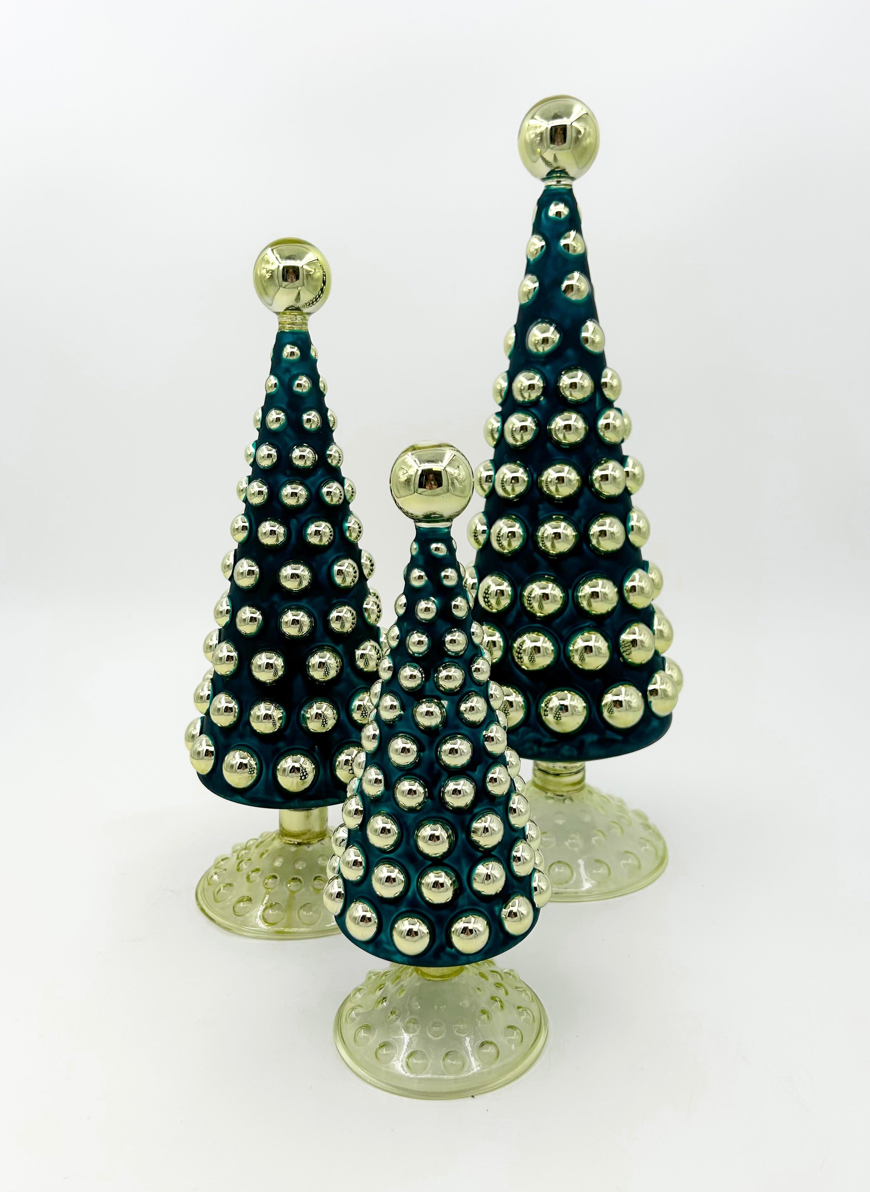 Add a splash of whimsy to your collection with the 25-Cody Foster Hobnail Tree. Crafted from glass with charming hobnail texture, these delightful trees come in multiple vibrant colors and three sizes, perfect for mixing and matching. Whether displayed solo or as a set, they bring playful sparkle and festive cheer to any space. Collect them all and watch your holiday décor grow!