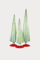 Celebrate the season with Cody Foster Carnival Trees! These glass trees feature a stripped cone shape and come in three sizes, each resting on a vibrant, differently colored base. Perfect for collectors, they add a playful and colorful touch to your holiday display or everyday décor.