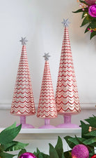 Add a splash of festive fun with the 25-Cody Foster Swag Tree! Featuring a lively red and pink zig zag pattern, this charming Christmas tree comes in multiple sizes, perfect for mixing and matching. Collect them all to create a joyful holiday display that brightens any space with playful cheer.