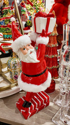 Bring festive cheer to your home with this charming 16.5-inch glossy red Santa figurine! Clutching a wrapped gift with jolly pride, this cheerful decoration captures the magic of Christmas. The vibrant red resin finish gleams beautifully under holiday lights, making it a standout piece for mantels, shelves, or entryways. Perfect for spreading seasonal joy and adding a touch of whimsy to your holiday décor. A delightful way to celebrate the most wonderful time of year!