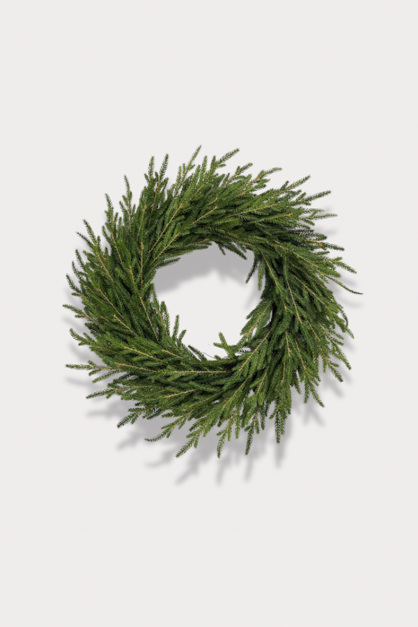 Elevate your seasonal décor with this 24" Norfolk Pine Wreath, expertly crafted to bring timeless elegance to your home. Its lush, deep-green needles provide a refined texture and natural beauty, making it an ideal centerpiece for any door or mantel. Durable and full-bodied, this wreath exudes sophistication while welcoming warmth and charm to your space.