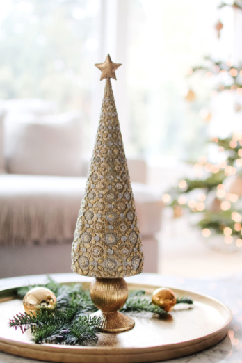 Bring festive charm to your décor with the 17" Amalfi Cone Christmas Tree in a delightful dark champagne color. This petite tree adds a touch of sparkle and whimsy, perfect for tabletops or cozy corners. Its unique cone shape gives a modern twist on holiday tradition, making your space feel merry and bright with a playful flair.