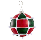 This 4.75" glass ornament features a classic red and green check pattern, enhanced with charming white pom pom accents that evoke a snowy, festive feel. Its delicate craftsmanship and timeless design make it an expert choice for adding a refined holiday touch to your tree or seasonal décor.