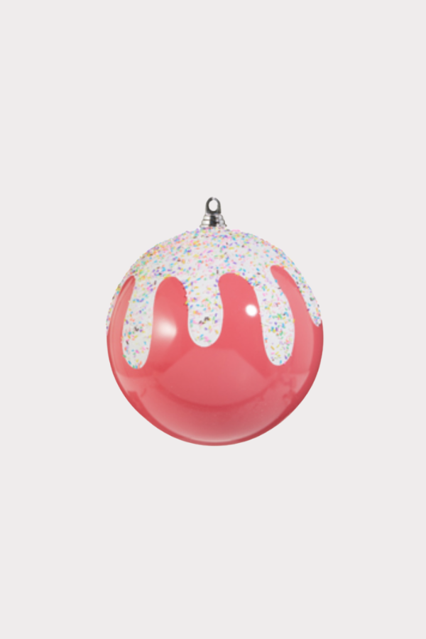 Brighten up your holiday decorations with this 10" frosted ornament sprinkled with colorful accents. Its cheerful blend of hues and frosted finish add a joyful, festive sparkle to your tree or mantel. Perfect for adding a playful pop of color and charm to any holiday setting!