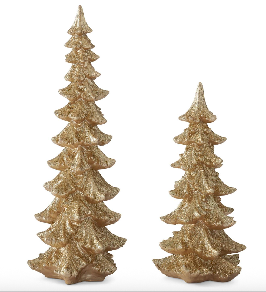 Add a touch of festive sparkle to your holiday décor with these stunning gold glittered resin Christmas trees. Each tree features shimmering gold accents that catch the light beautifully, creating an elegant yet playful seasonal display. Available in two convenient sizes, you can mix and match to create the perfect arrangement for any space—from tabletops to mantels. These charming trees bring instant holiday magic to your home without the mess of real pine needles!