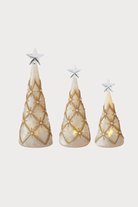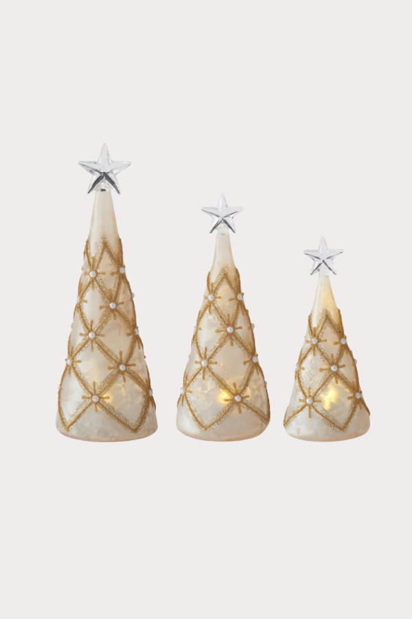 Bring heavenly charm to your holiday décor with these stunning Gold & Pearl LED Tall Trees! Each angel features elegant gold and pearl accents that catch the light beautifully, creating a magical glow in any room. Equipped with a convenient timer function, you can set it and forget it—perfect for creating ambiance without the hassle. Available in three different sizes, mix and match to create your own angelic display. Sold separately, so you can customize your collection exactly how you want it. A celestial touch that'll have everyone saying "halo, yes!"