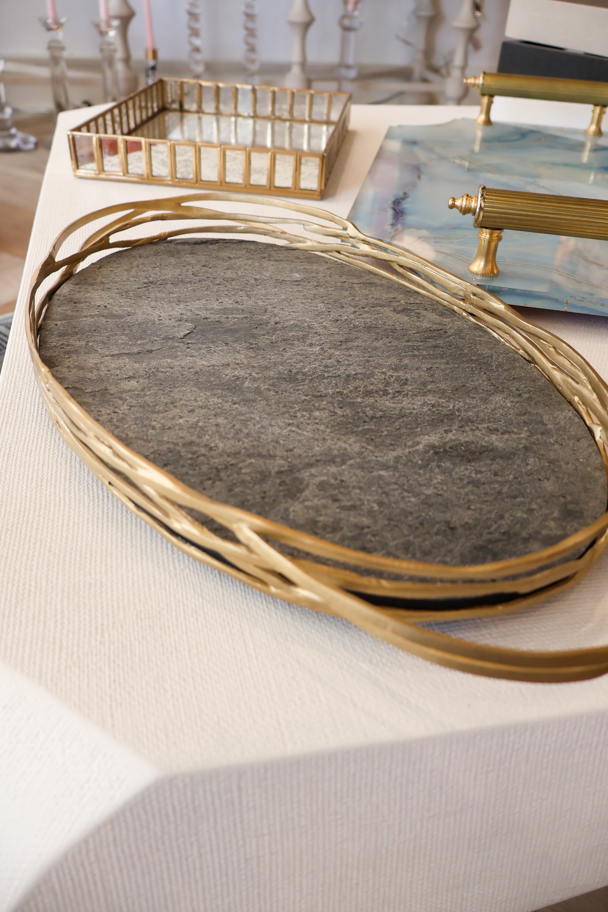 Beardsley Slate/Brass Tray