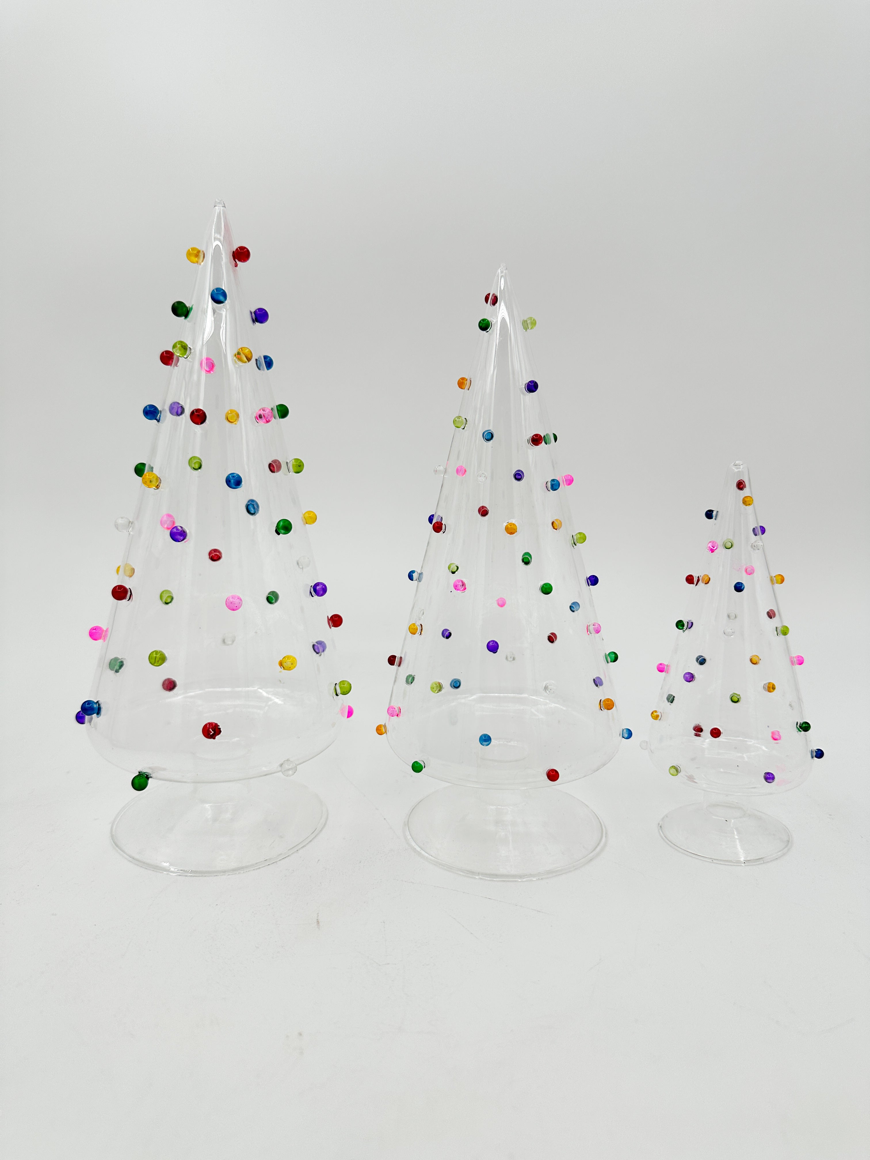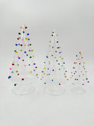 Bring festive magic to your holiday décor with these enchanting iridescent bauble trees! Each tree sparkles with shimmering, color-shifting surfaces adorned with raised dots in vibrant hues that catch the light from every angle. Perfect for creating a whimsical Christmas display, these playful trees come in three distinct sizes and shapes—choose your favorites or collect them all for a dazzling tabletop arrangement. Mix and match to design your own colorful holiday wonderland!