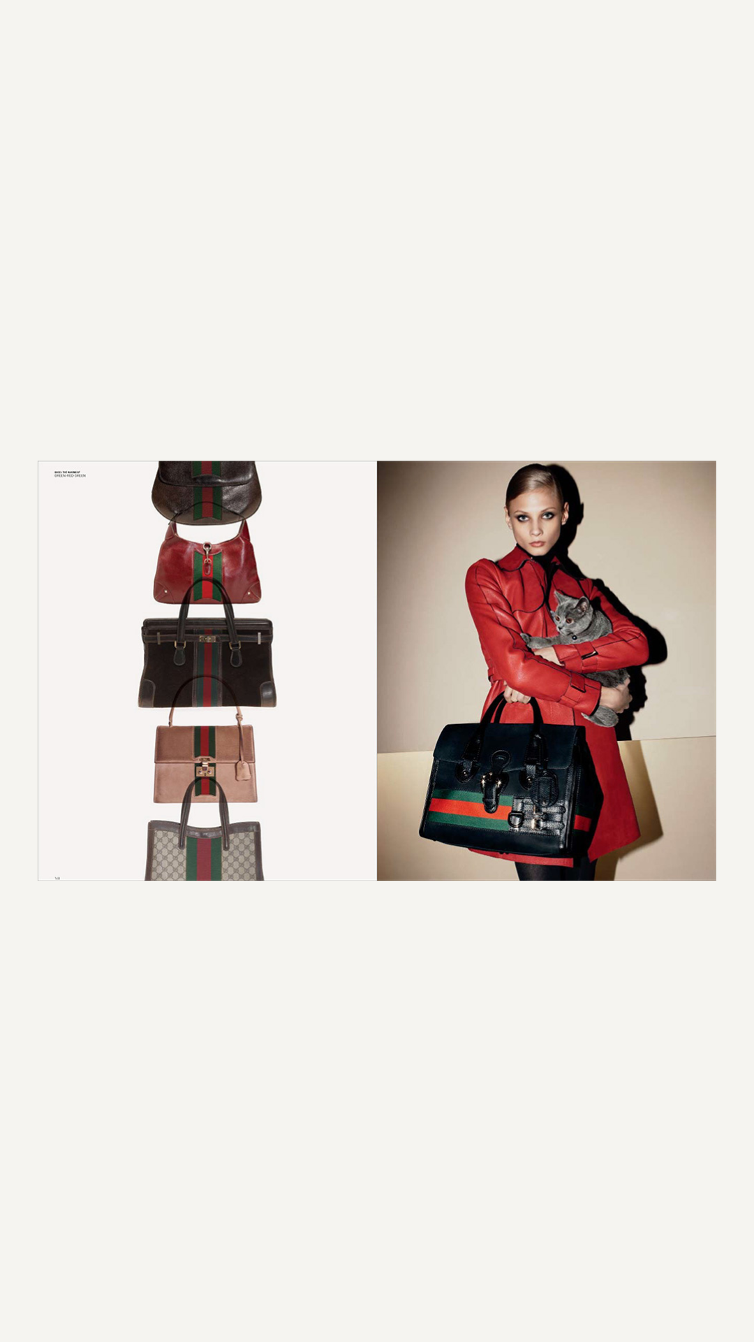 This gorgeous book designed by Arnell offers an in-depth look into Gucci’s origins, identity, influence, and innovation, including fabrication methods and appropriation of signature materials, past and present, and its influence among high society and Hollywood. The book is a heartfelt and personalized tribute to the heritage and influence of this iconic, multifaceted brand.