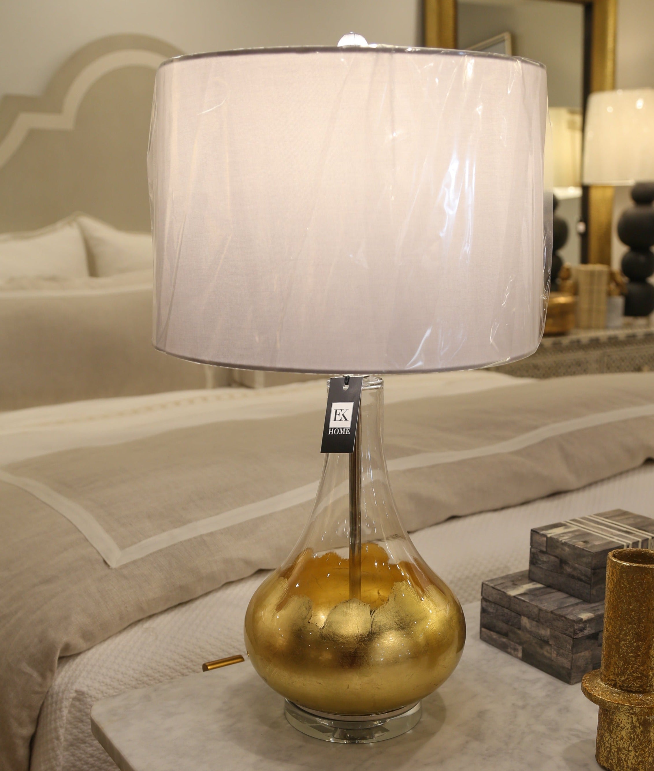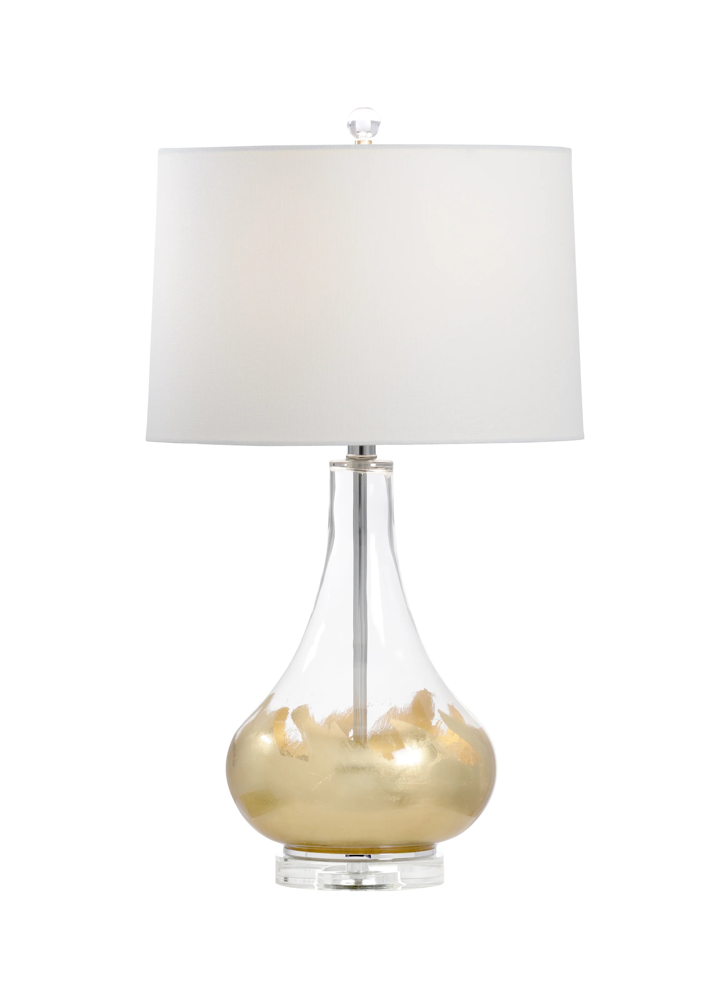 Illuminate your space with our whimsical Leafed Lamp! This clear glass beauty dances with delicate gold leaf accents that catch the light and sprinkle your room with sparkly charm. It's not just a lamp – it's jewelry for your side table that brings a touch of golden magic to any room. Perfect for adding a playful shimmer to your home!