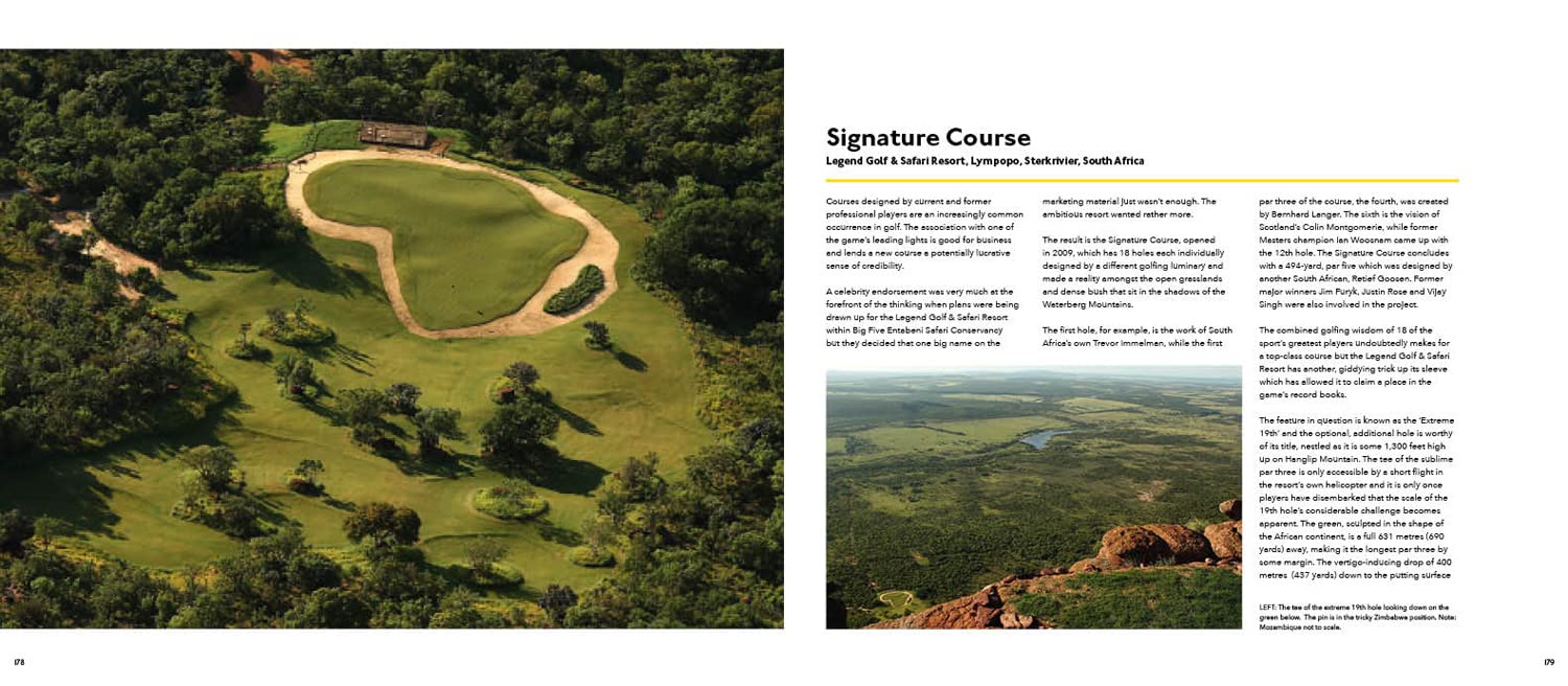 Remarkable Golf Courses encompasses the extremes of the sport – from the highest golf course in La Paz, Bolivia, to the lowest, in Death Valley, USA; from the most northerly in the Arctic Circle to the most southerly in Tierra del Fuego.
