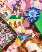 A competition. A baking show. Fourteen friendly doggos. Who will be: Top Dog? Delve into a 1000-piece puzzle filled with pooches proudly presenting decadent desserts. Hot diggity dog!