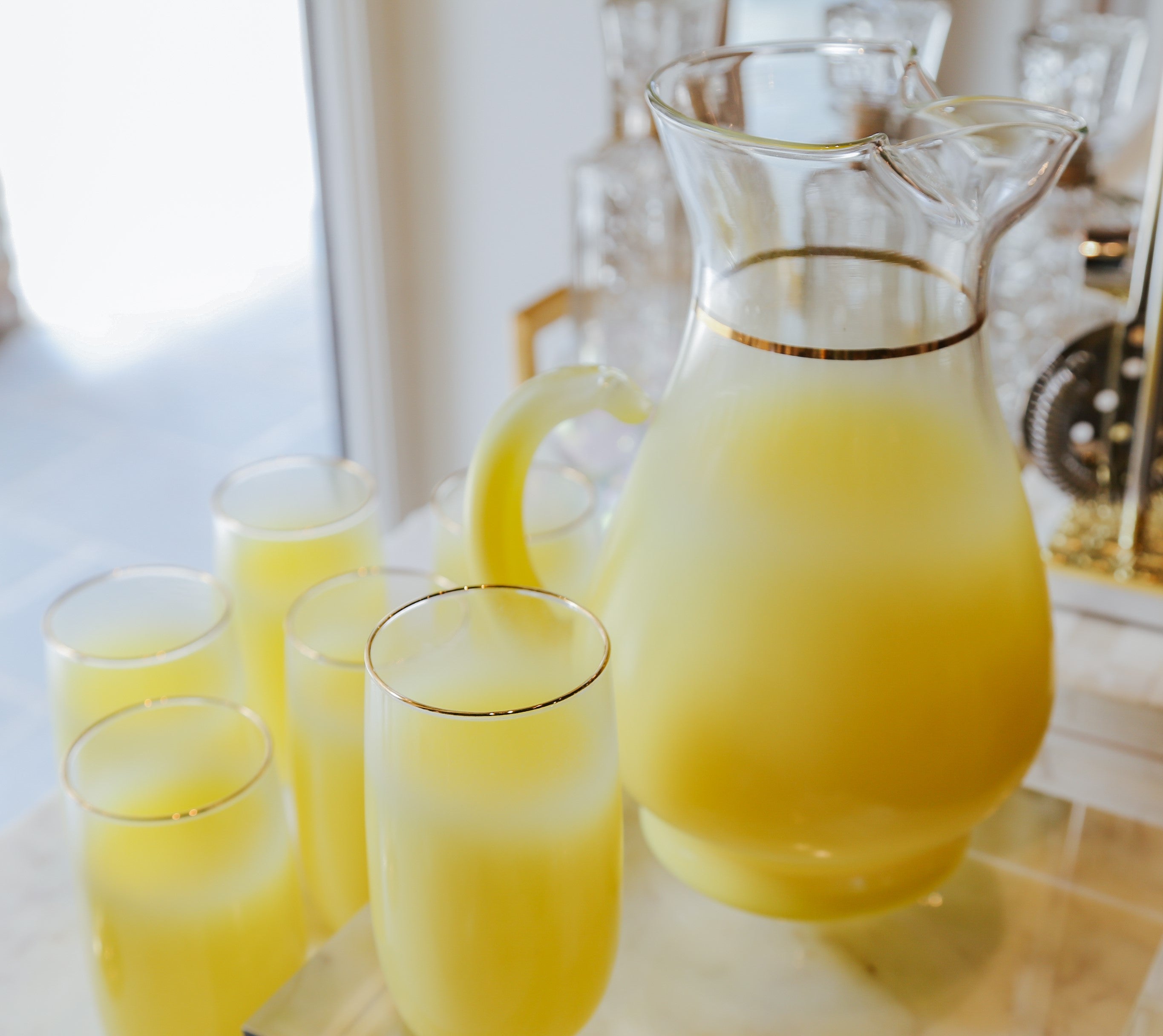Indulge in the sophisticated charm of our Vintage Lemonade Pitcher and Glass Set. Crafted with a timeless design, this set adds a touch of elegance to any gathering. Serve refreshing drinks with ease and impress your guests with this exclusive set. Perfect for luxurious summer entertaining.